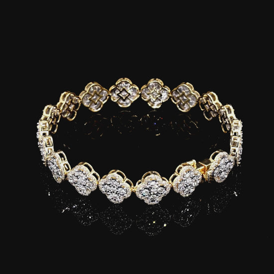 An elegant and iconic design, this beautiful bracelet features a stunning series of open-work, four-leaf clover links. Each clover is masterfully pavé-set with brilliant, natural diamonds, creating a continuous and captivating sparkle around the wrist. The open design gives this classic symbol a modern and airy feel, making it a perfect statement of sophisticated luck.